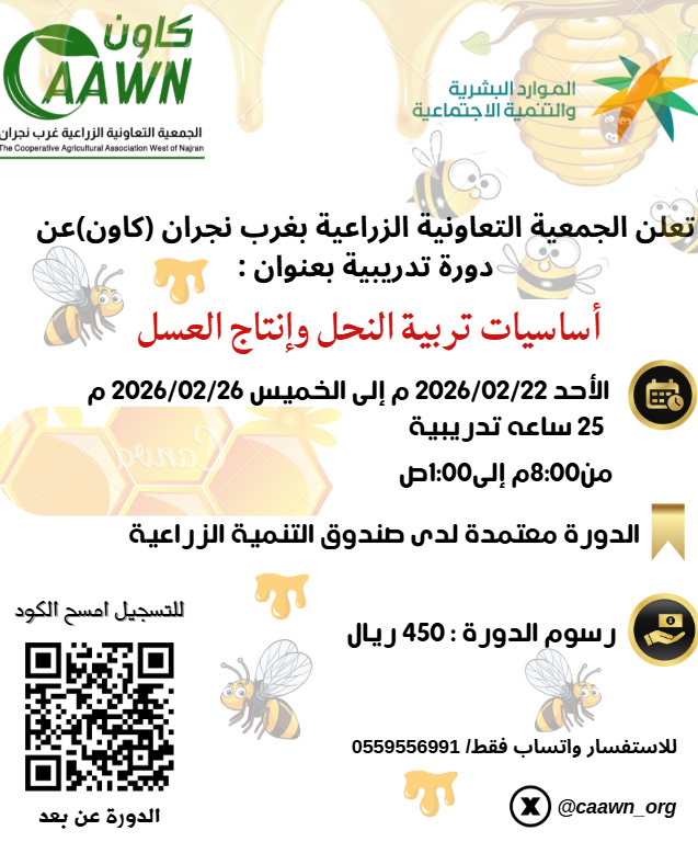 الدورات التدريبية دورة اساسيات تربية النحل وإنتاج العسل رقم (28) دورة اساسيات تربية النحل وإنتاج العسل الاسم كامل ( كما هو بالهوية ) :(مطلوب)رقم الجوال:(مطلوب)رقم الهوية:(مطلوب) Δ